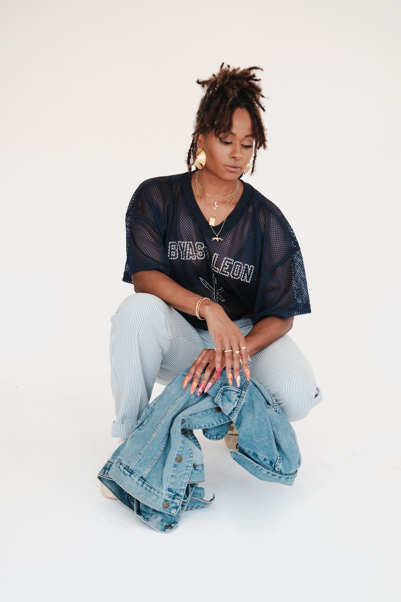 Beloved friends/models showed up & showed out: with Kris (locs, gold earrings) being 5'10" and Reece (short hair, beard) being 6'0". Both colors of the jersey come in one size only, XL.